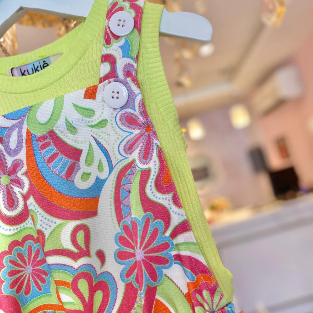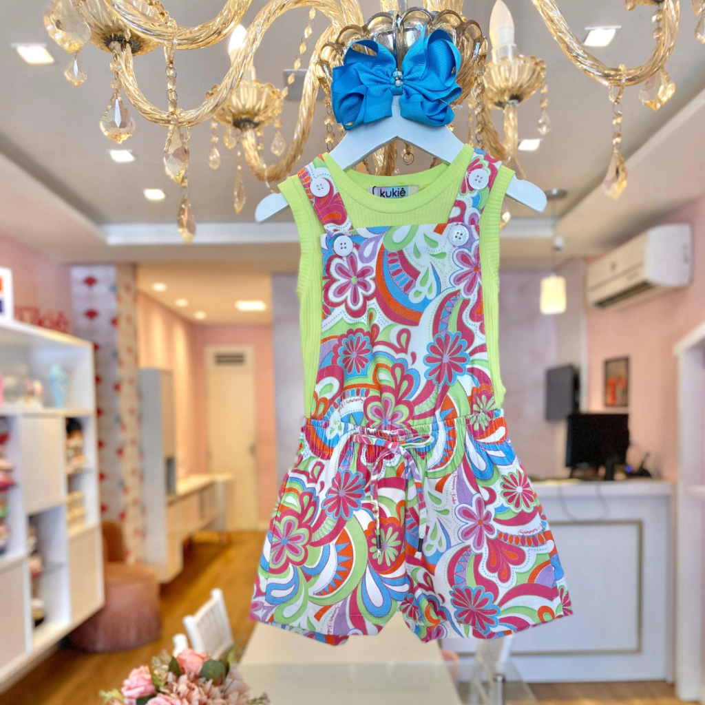Jardineira: 97% algodão e 3% elastano.