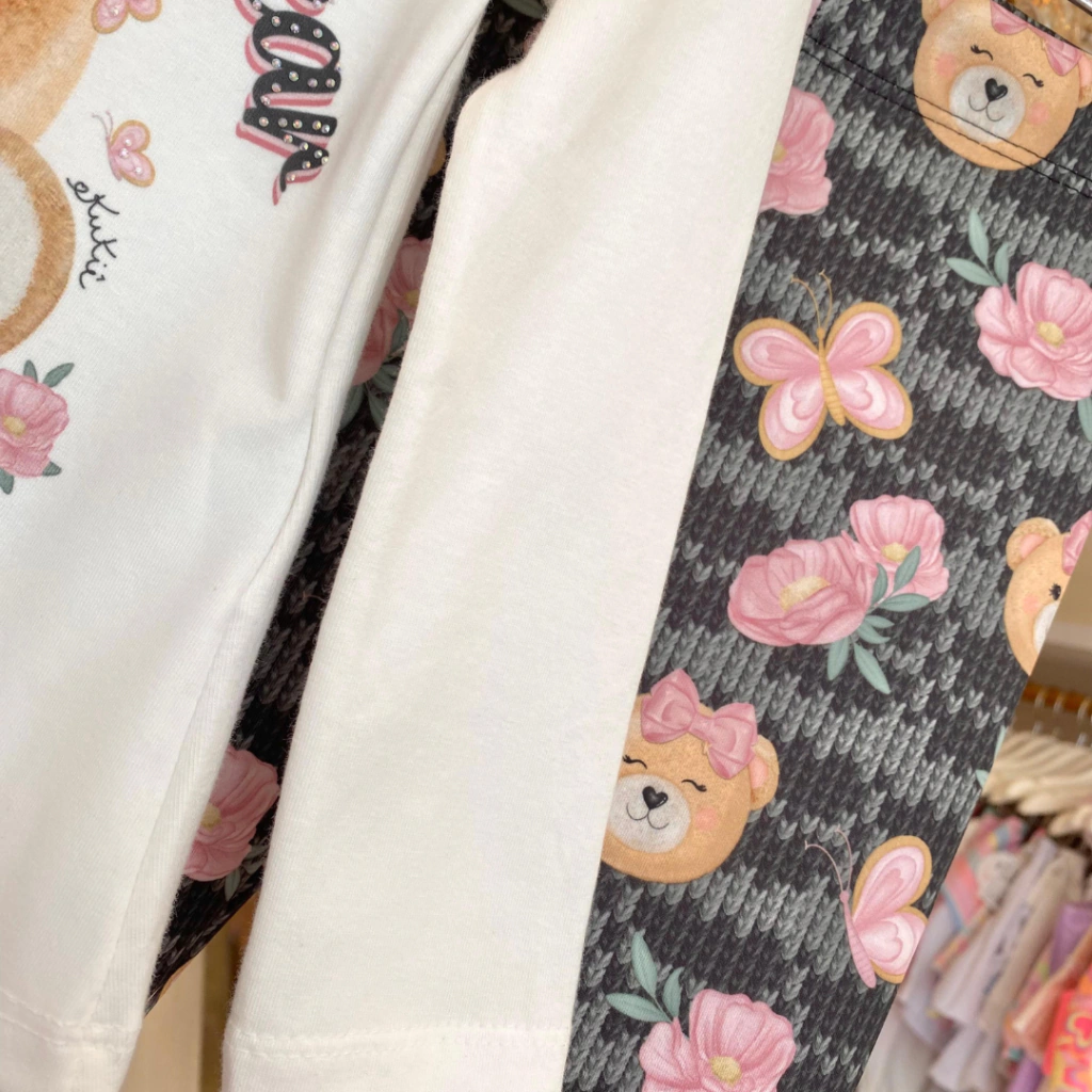 Conjunto Blusa Alongada Em Cotton E Calça Legging Em Flytech Kukiê.
