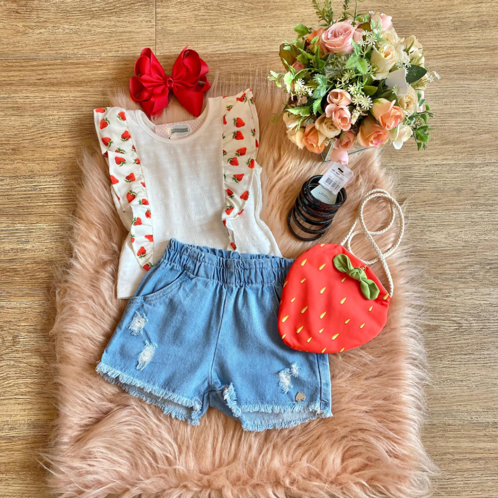 Conjunto Blusa Boxy Regata E Short E Vermelho Kukiê.
