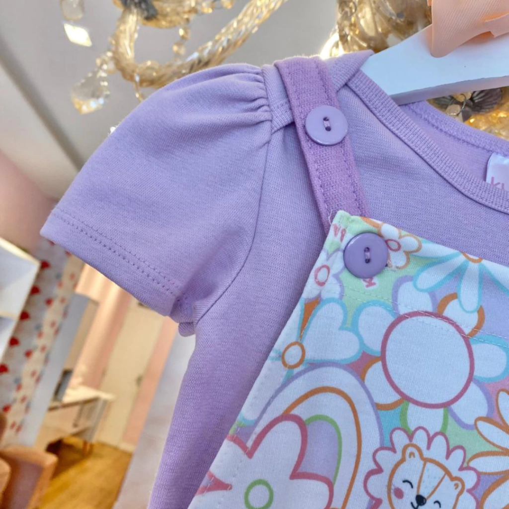 Body Manga Curta E Jardineira Alça Colorido Kukiê.