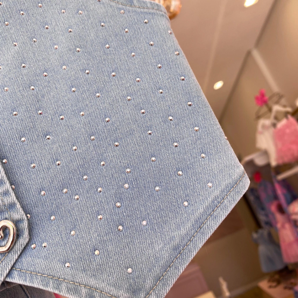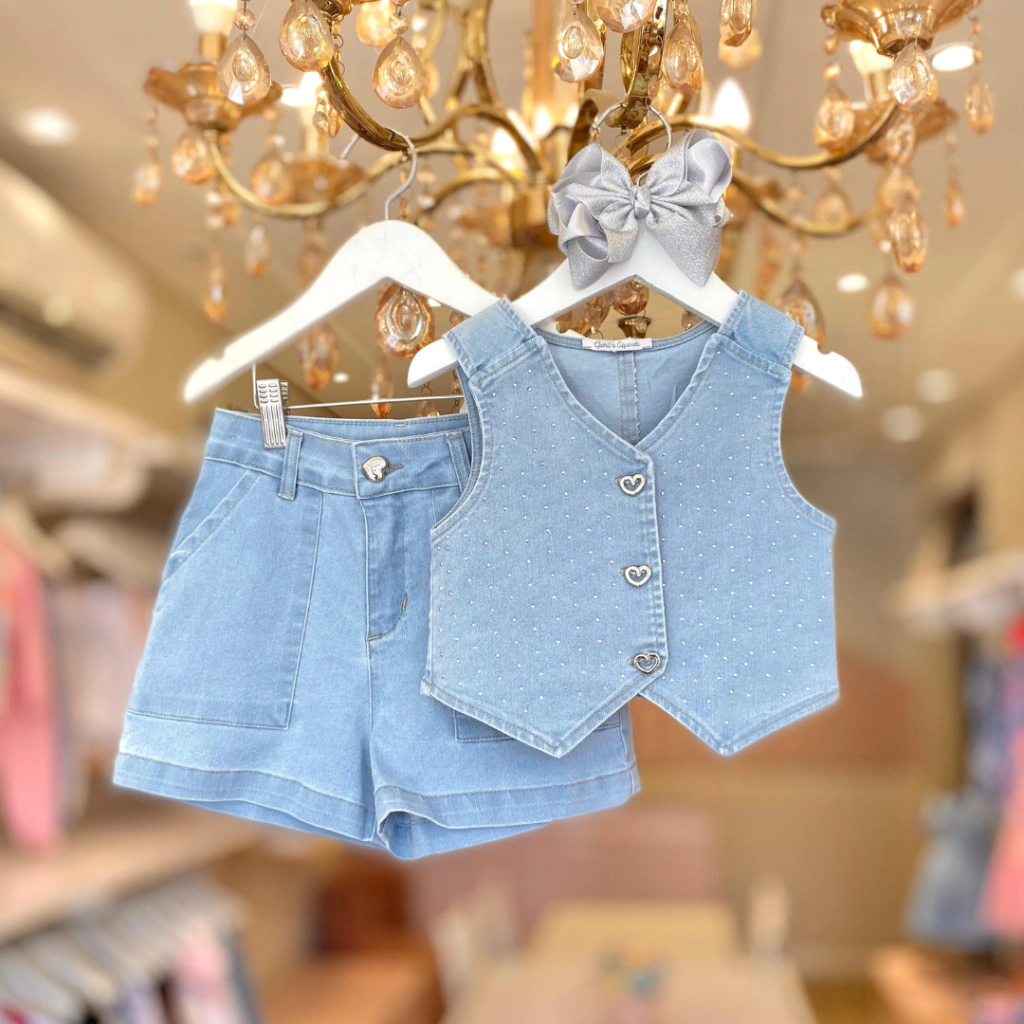 Conjunto Colete E Short Jeans Com Brilho Gabriela Aquarela.
