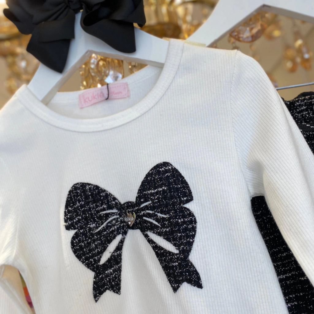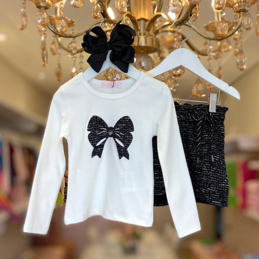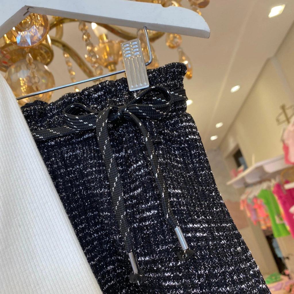 Conjunto De Blusa Em Canelado E Short Em Tweed Brilho Preto Kukiê.