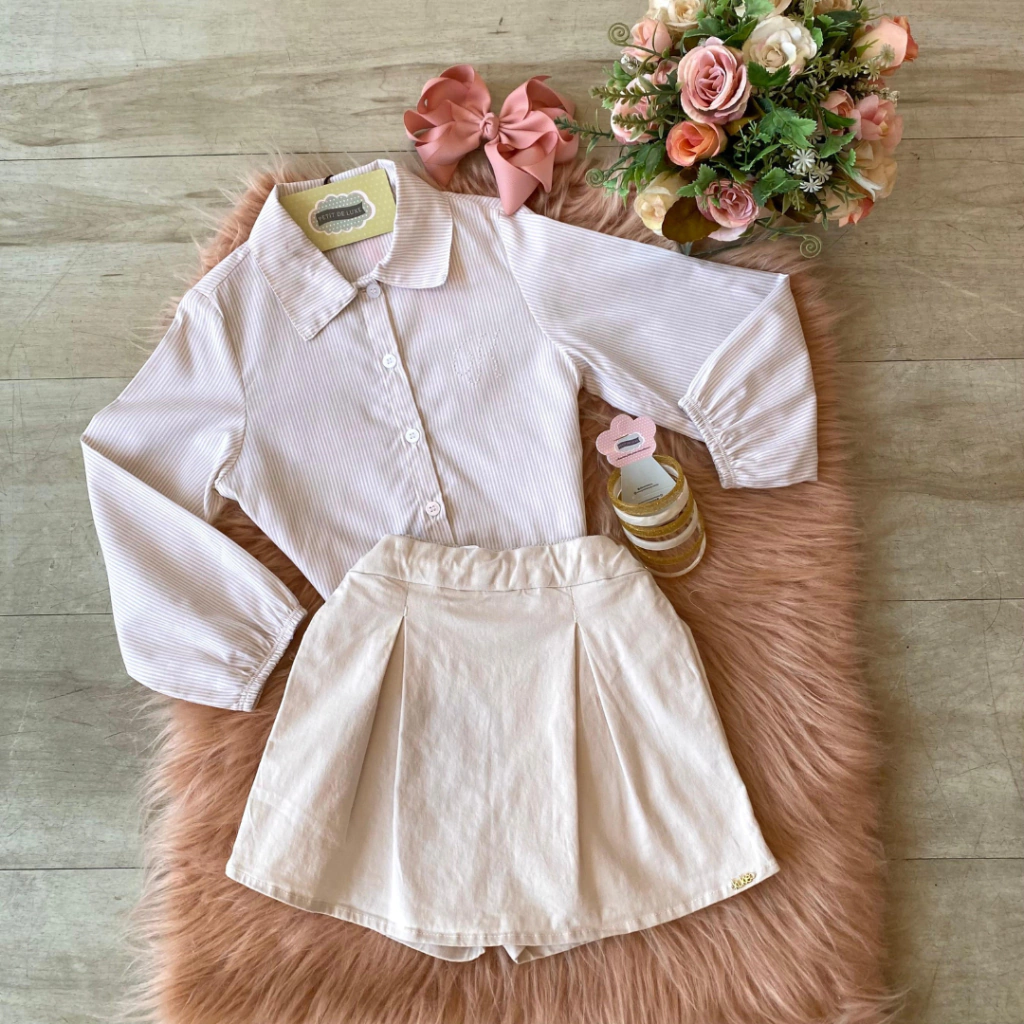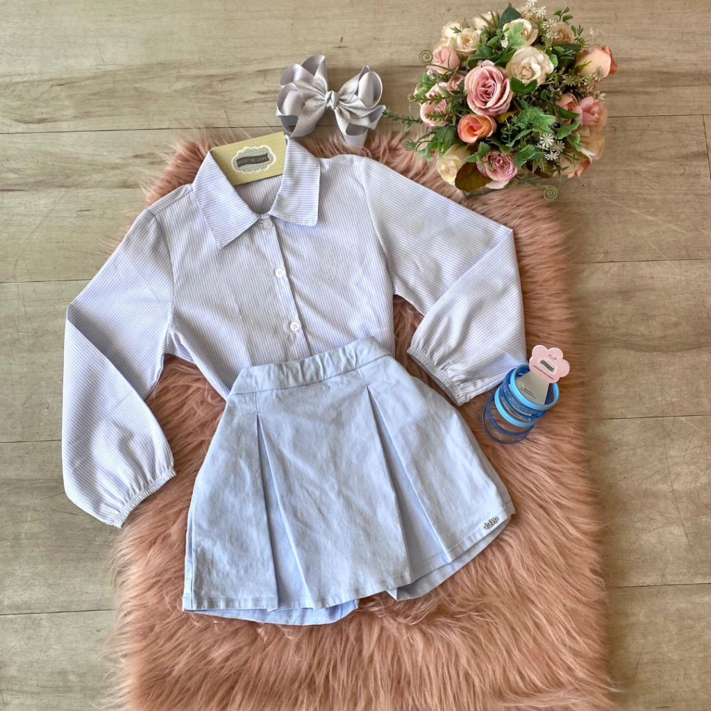 Conjunto de Camisa em Tricoline de Algodão e Short Saia em Sarja com Elastano Kukiê.