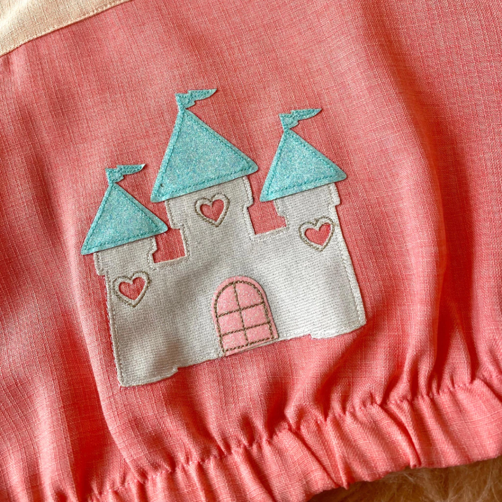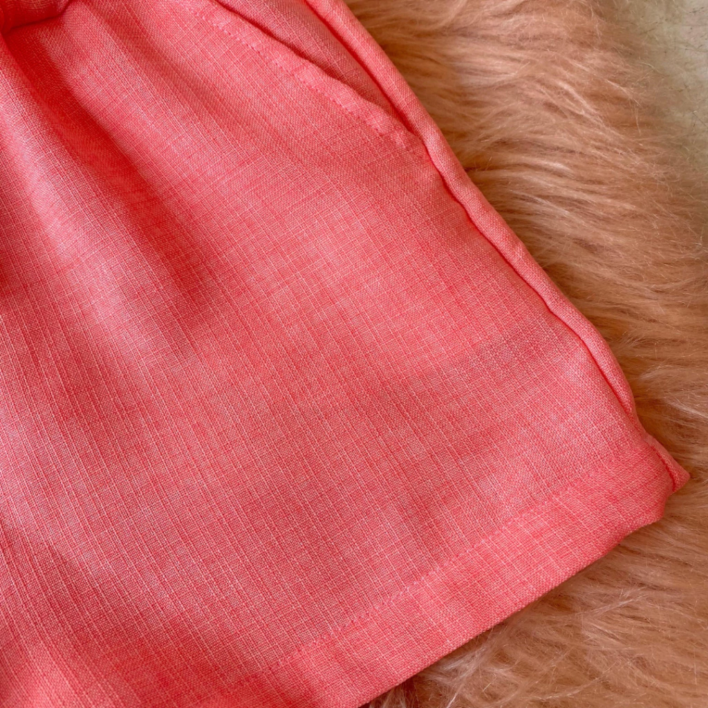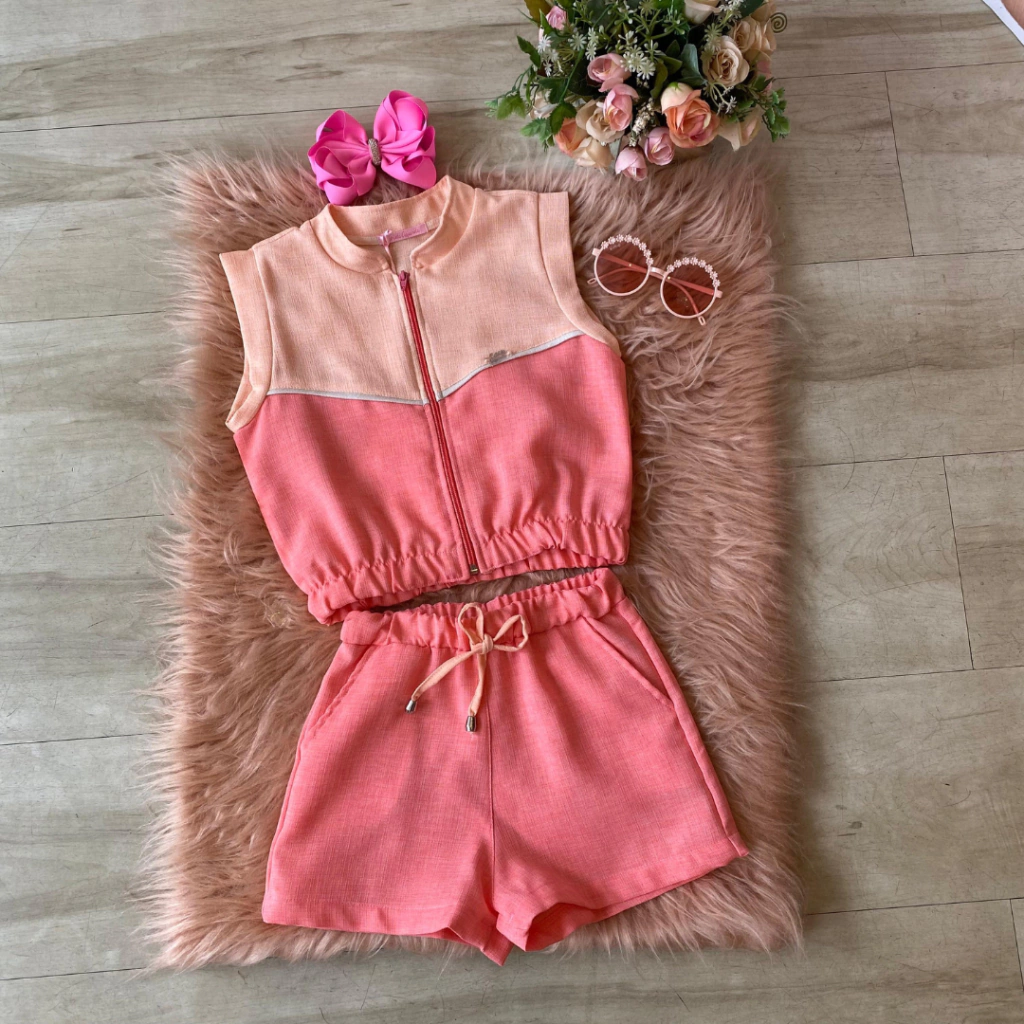 Conjunto Short E Colete Bicolor Com Aplicação de Castelo Nas Costas Rosa Gabriela Aquarela.