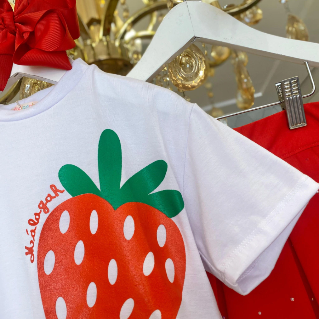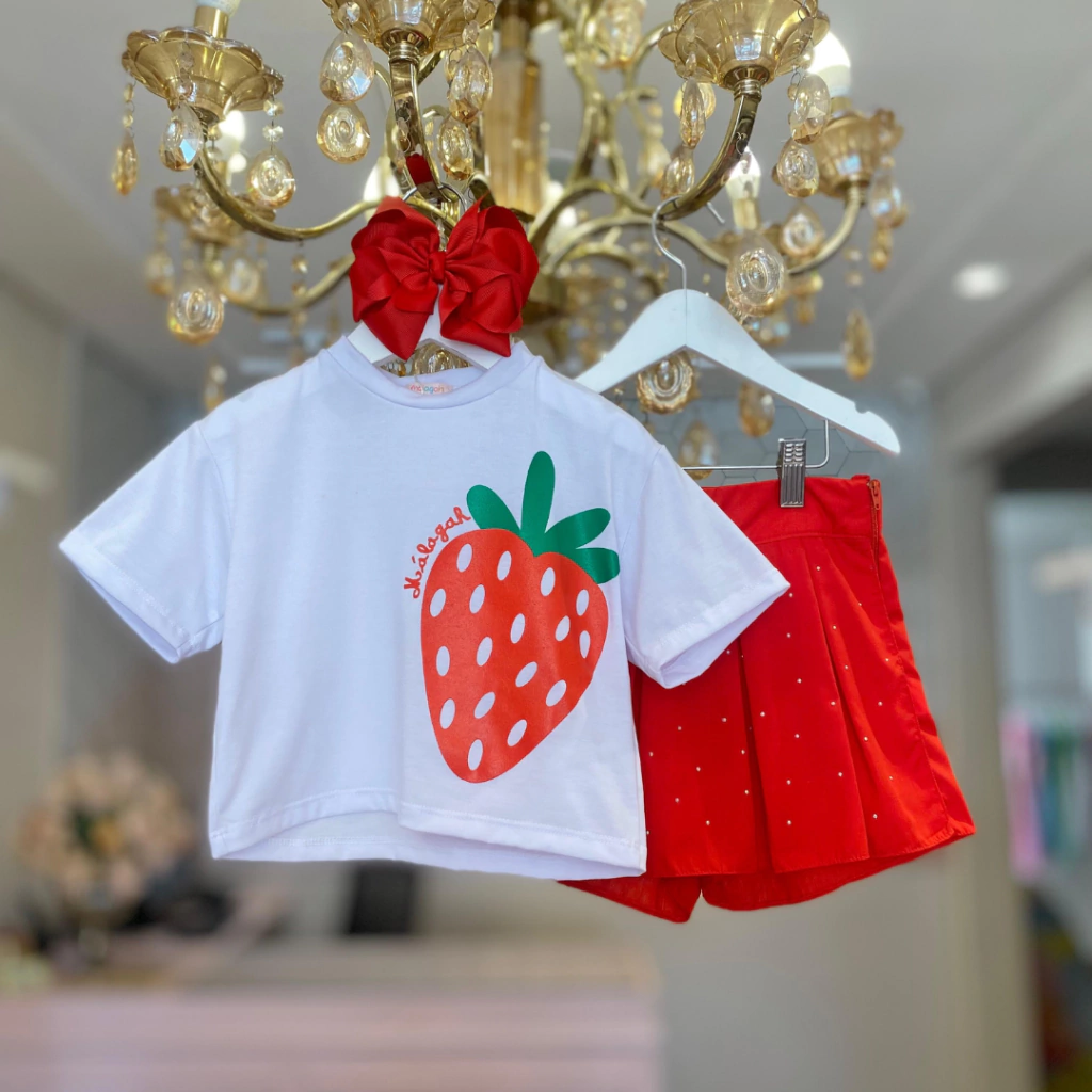 Conjunto Short Saia E Blusa Com Estampa de Morango Málagah.