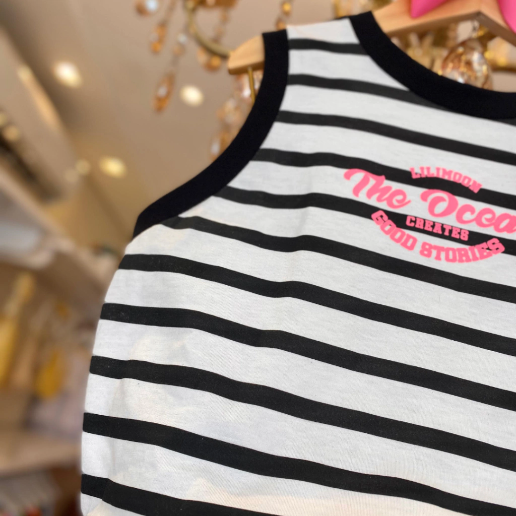 Conjunto Teen de Regata Boxy em Meia Malha e Short Saia em Alfaiataria Amore Lilimoon.