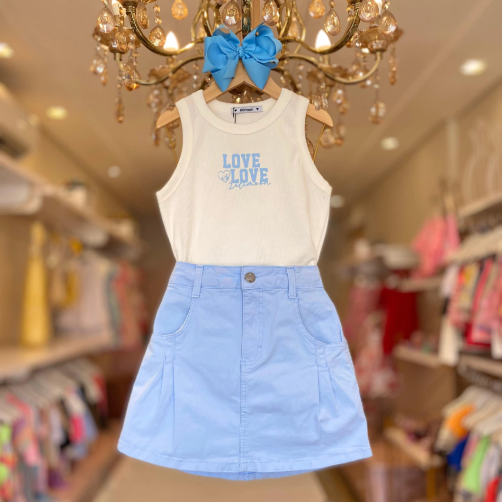 Conjunto Teen De Regata Em Canelado E Saia Em Sarja Com Elastano Lilimoon.