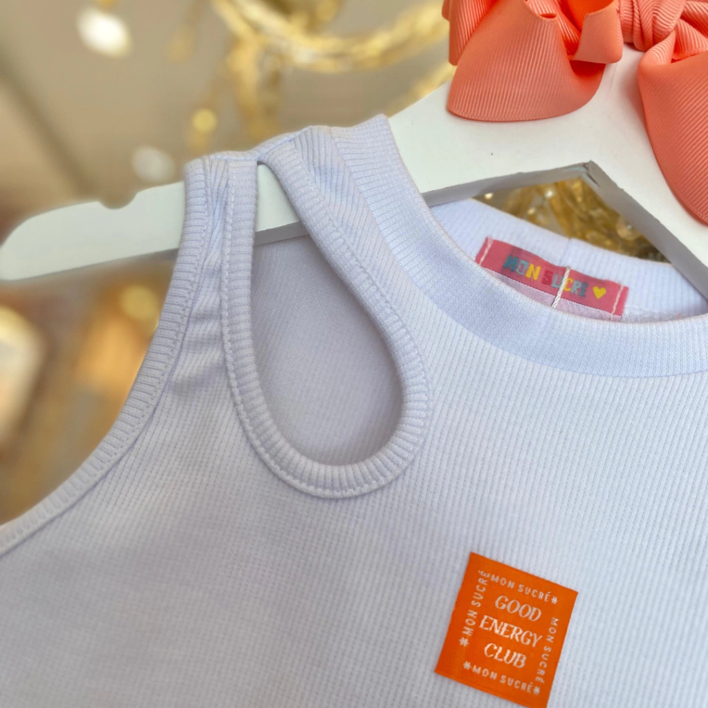 Conjunto Verão Spring Blusa com Recorte no Ombro e Short Jeans Mon Sucré.