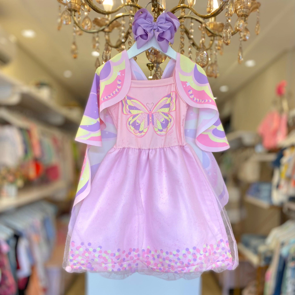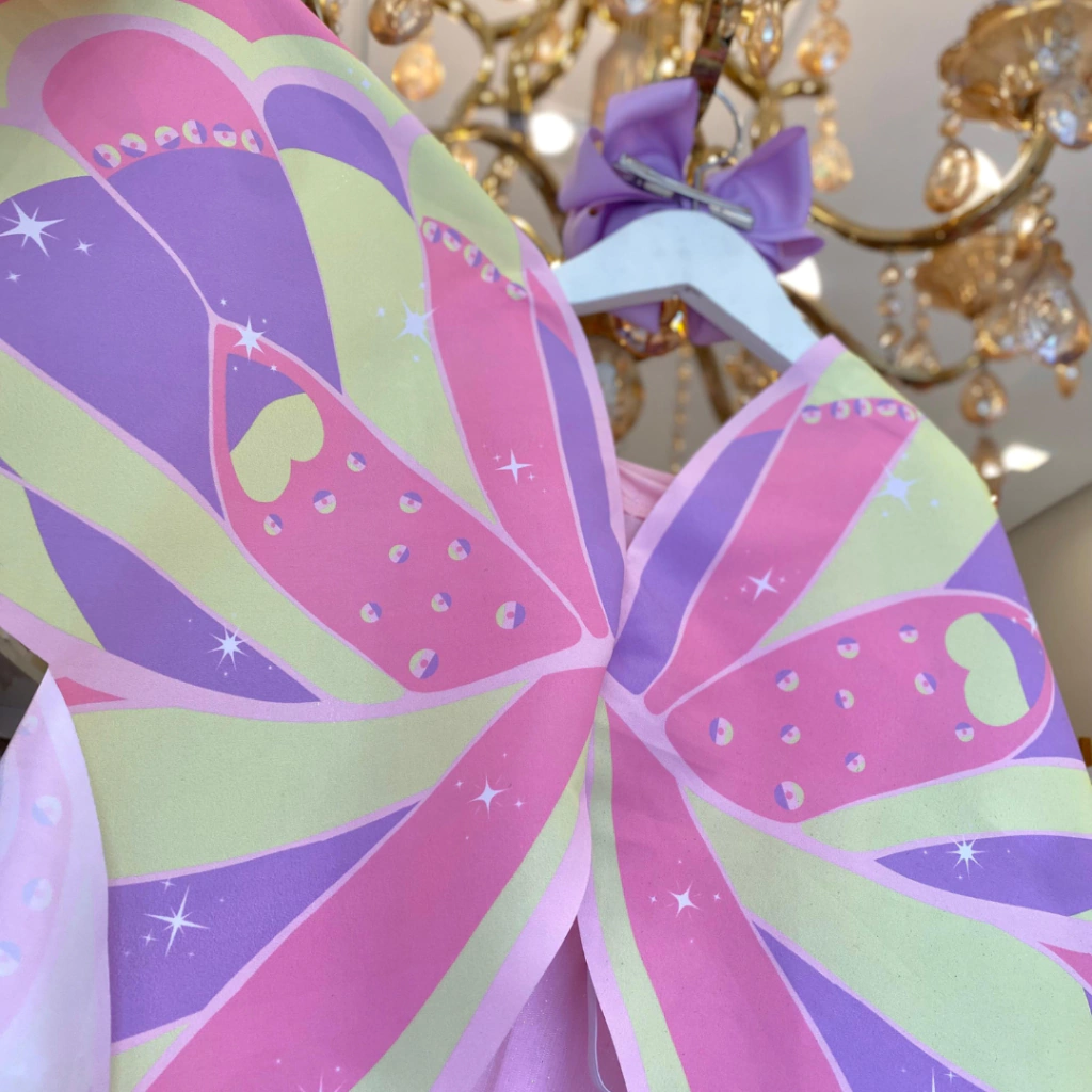 Fantasia de Borboleta (Vestido em Malha UV e Tule Brilho - Acompanha Asa) Kukiê.