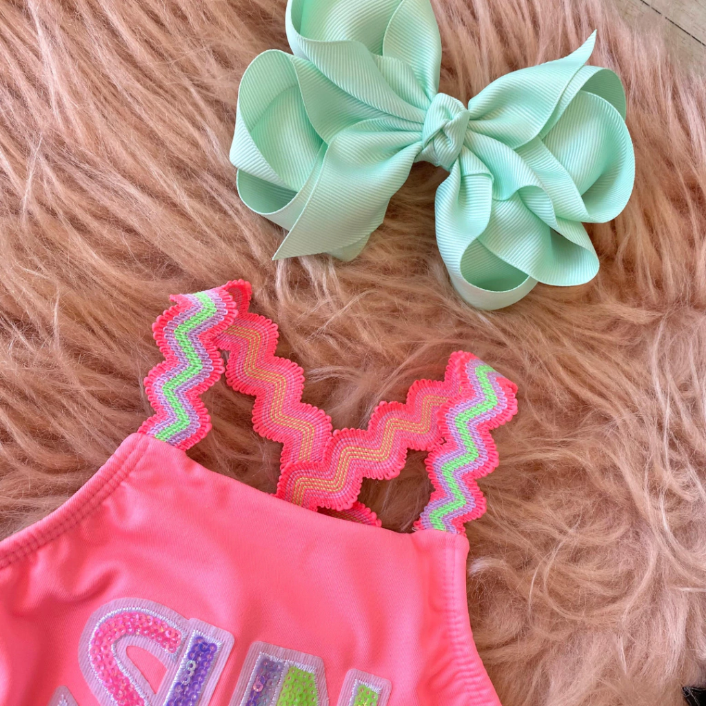Maiô Em Malha Com Proteção Uv 50+ Rosa Neon Kukiê.