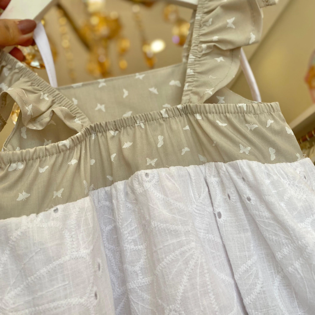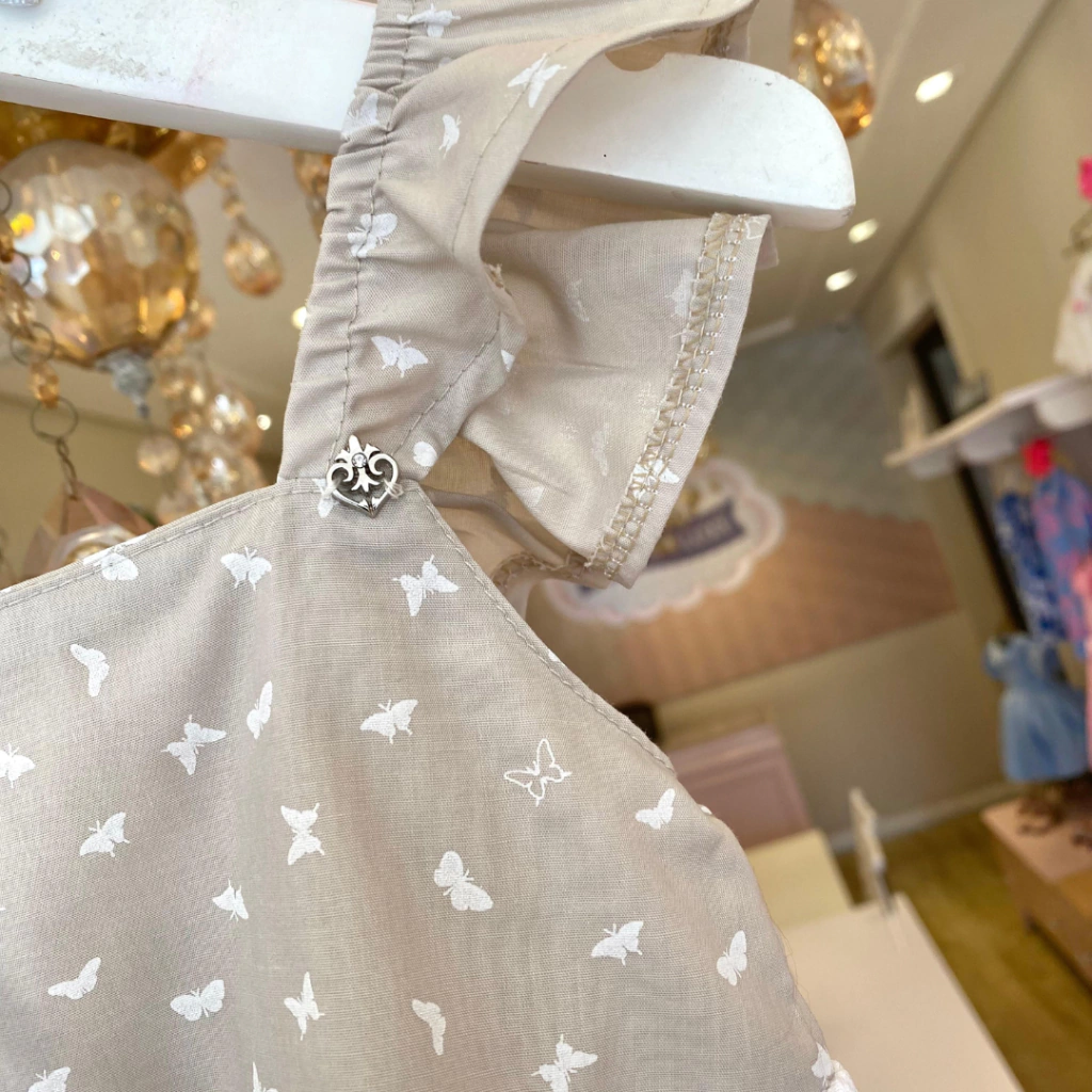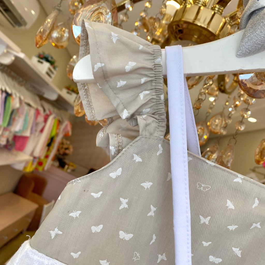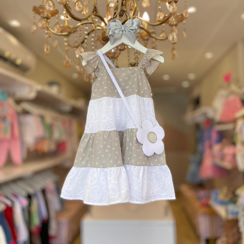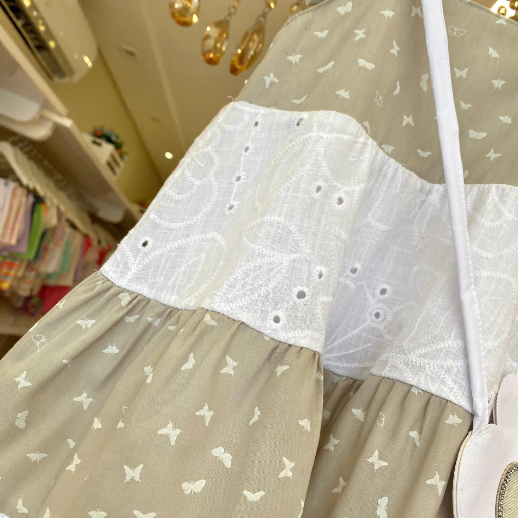 Vestido E Bolsa Bege Borboletas Bege Gabriela Aquarela.