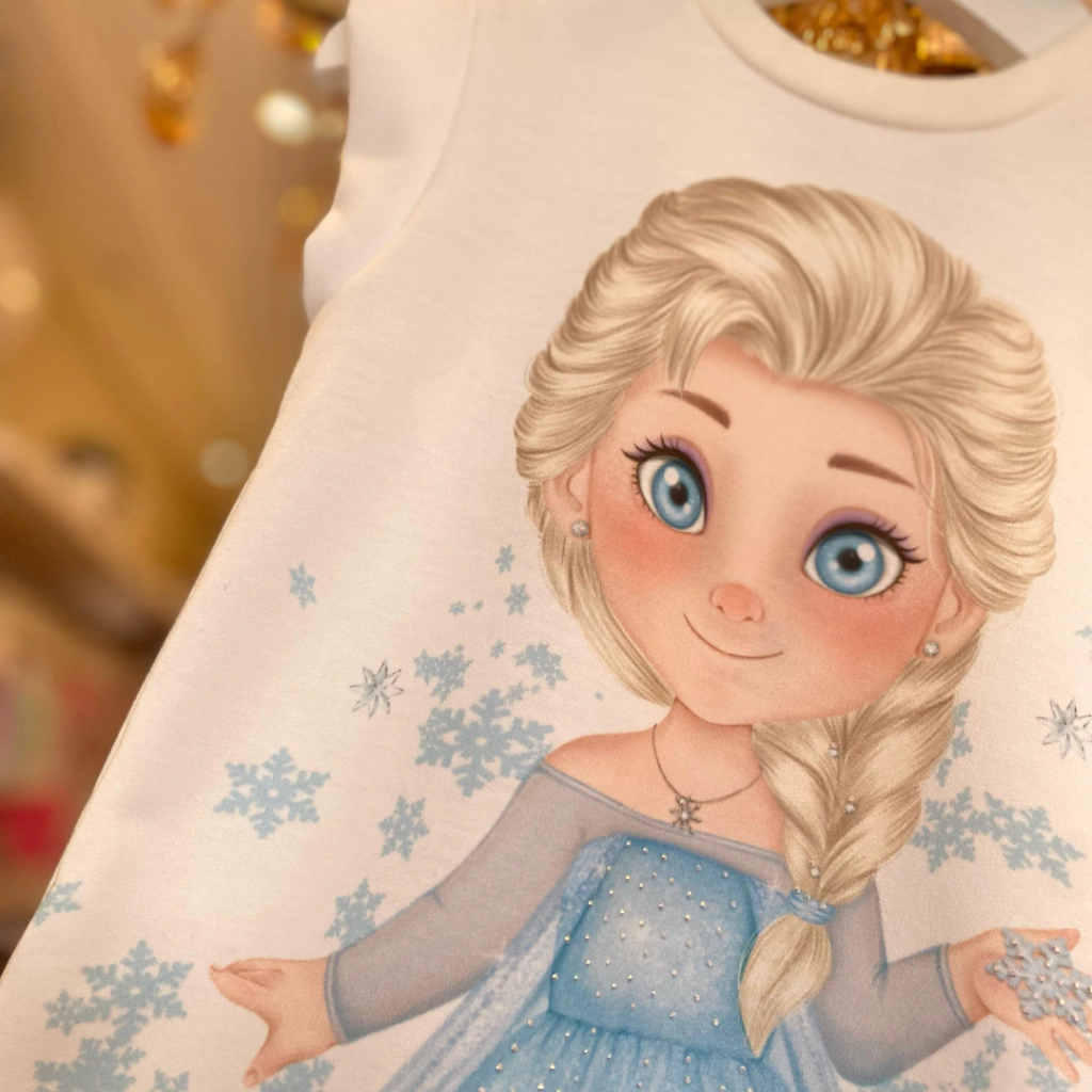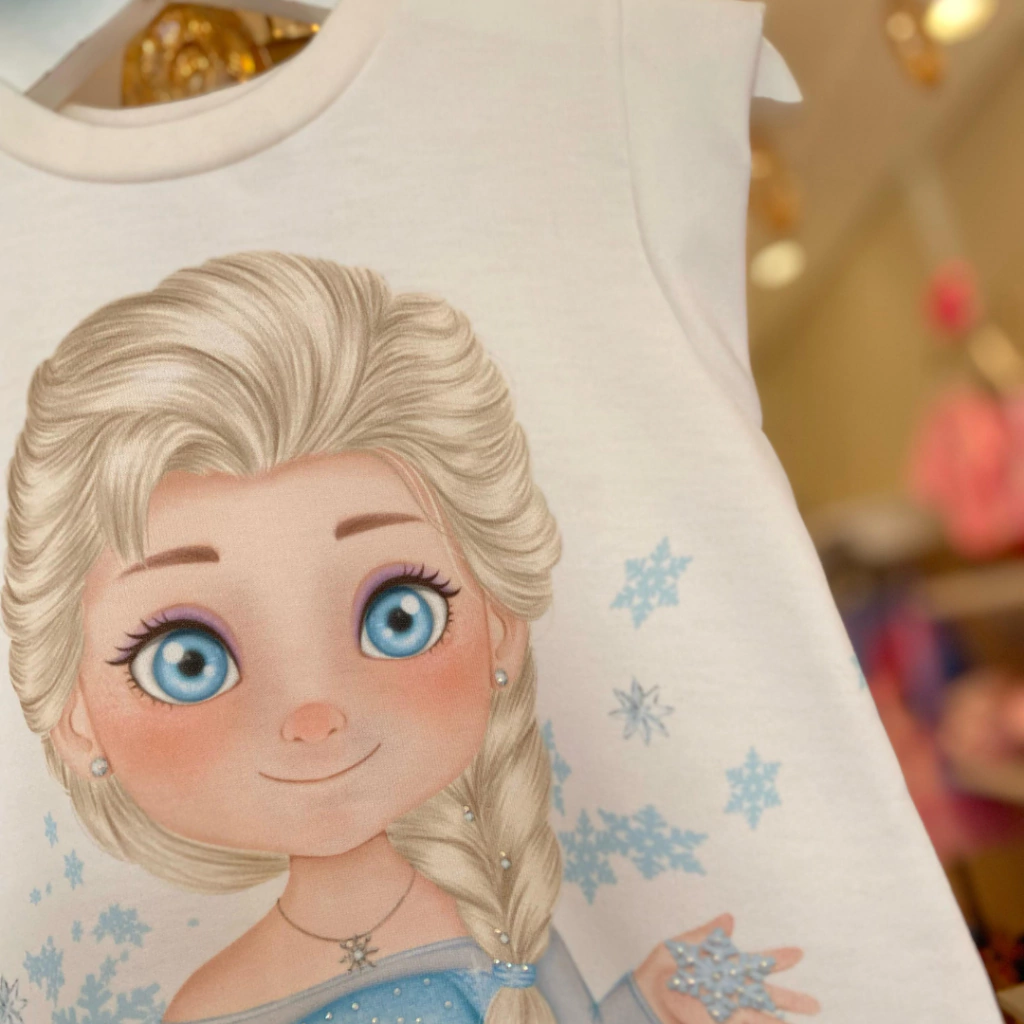 Vestido Em Molecotton Off Princesa Elsa Kukiê.
