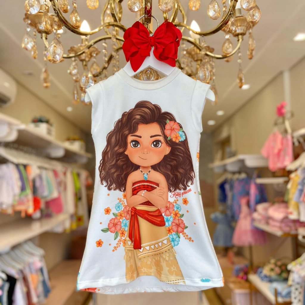 Vestido Em Molecotton Off Princesa Moana Kukiê.