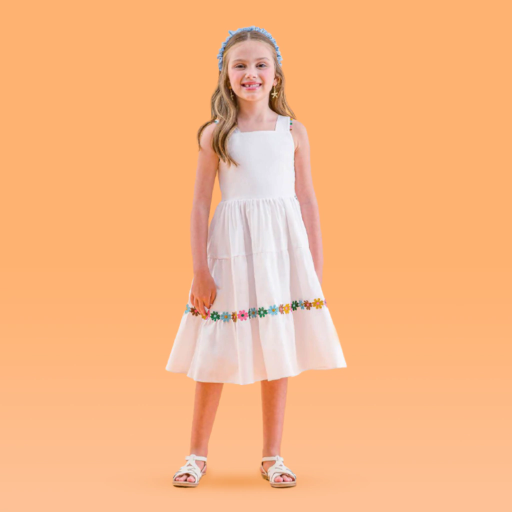 Vestido Em Tricoline Com Aplicação De Entremeio Málagah.