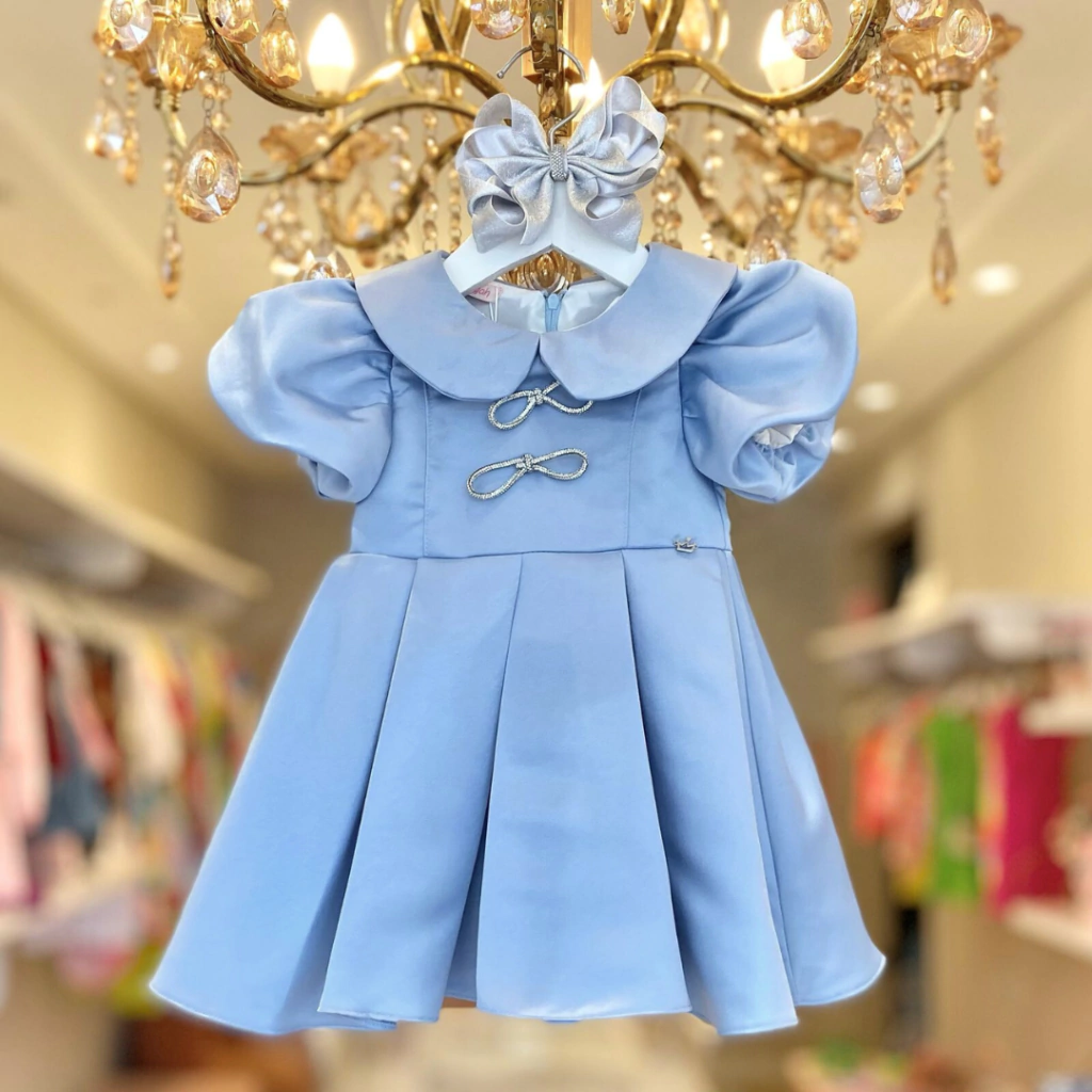 Vestido Festa Com Manga Balone E Lacinhos Em Strass Málagah.